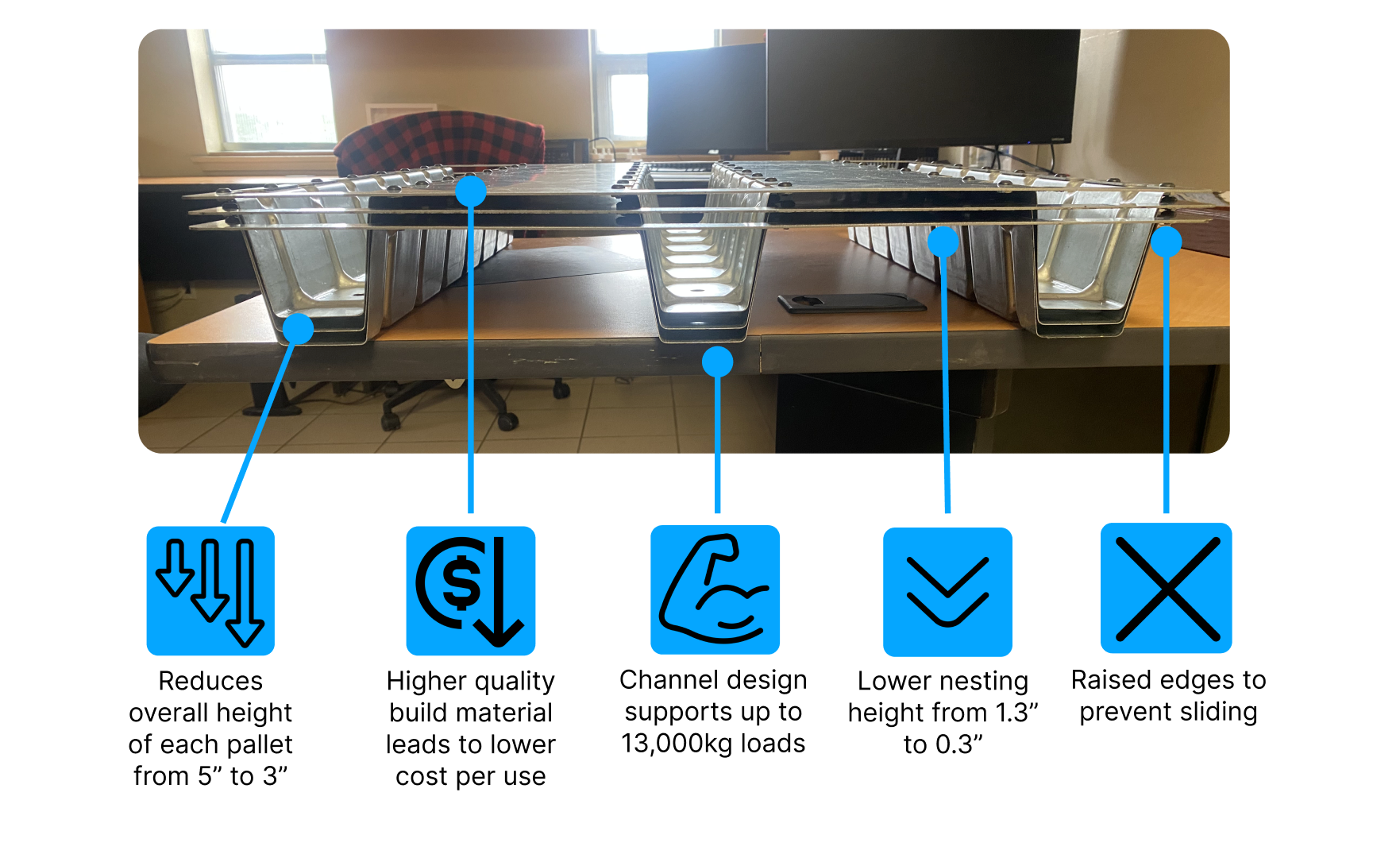 • The DaVinci Nestable Steel Pallet offers a shorter nesting height compared to plastic pallets.