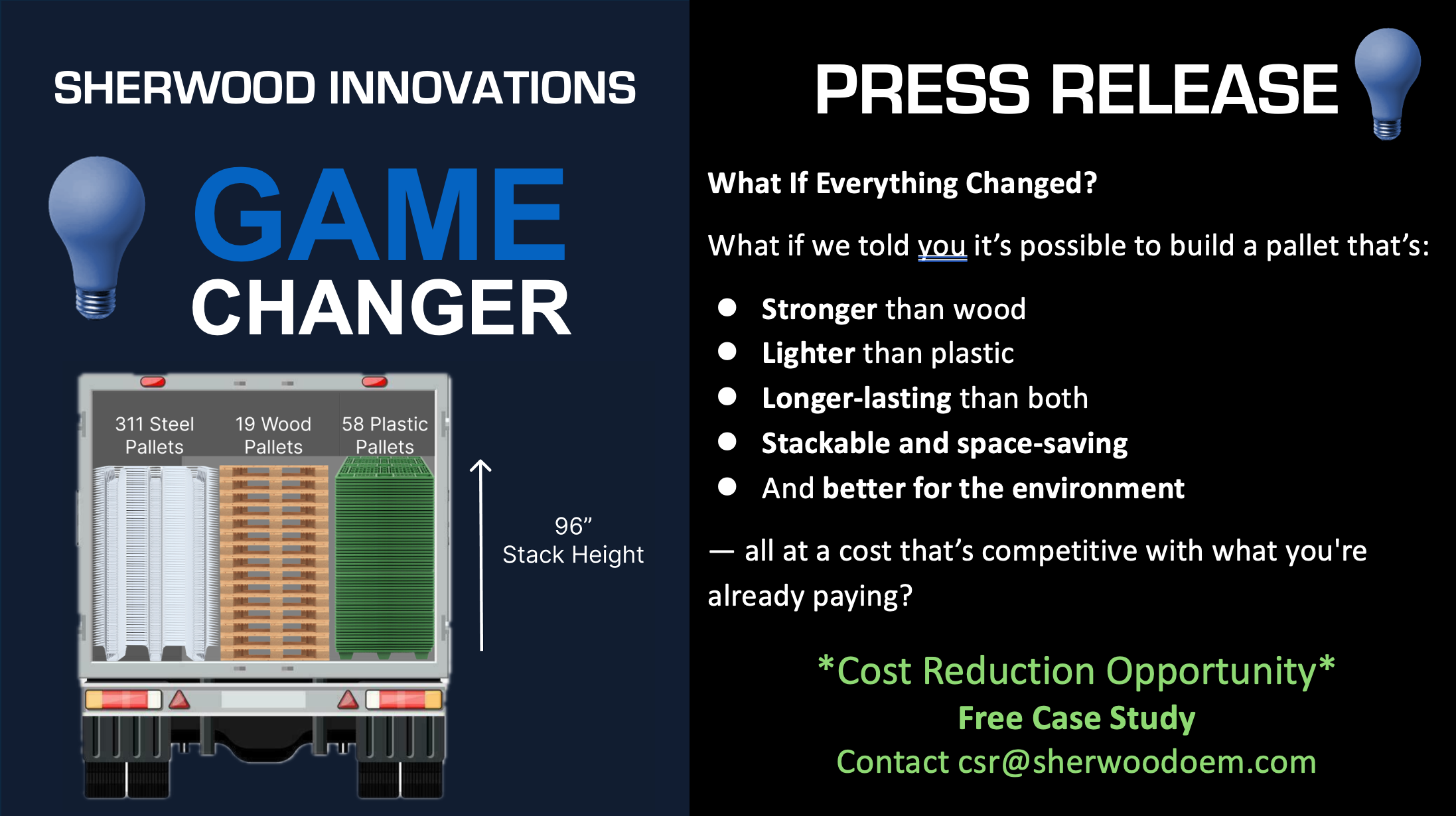 To learn more about our new product, or to recieve an in-depth case study of your pallet cost savings, contact us through email at hsidhu@sherwoodoem.com